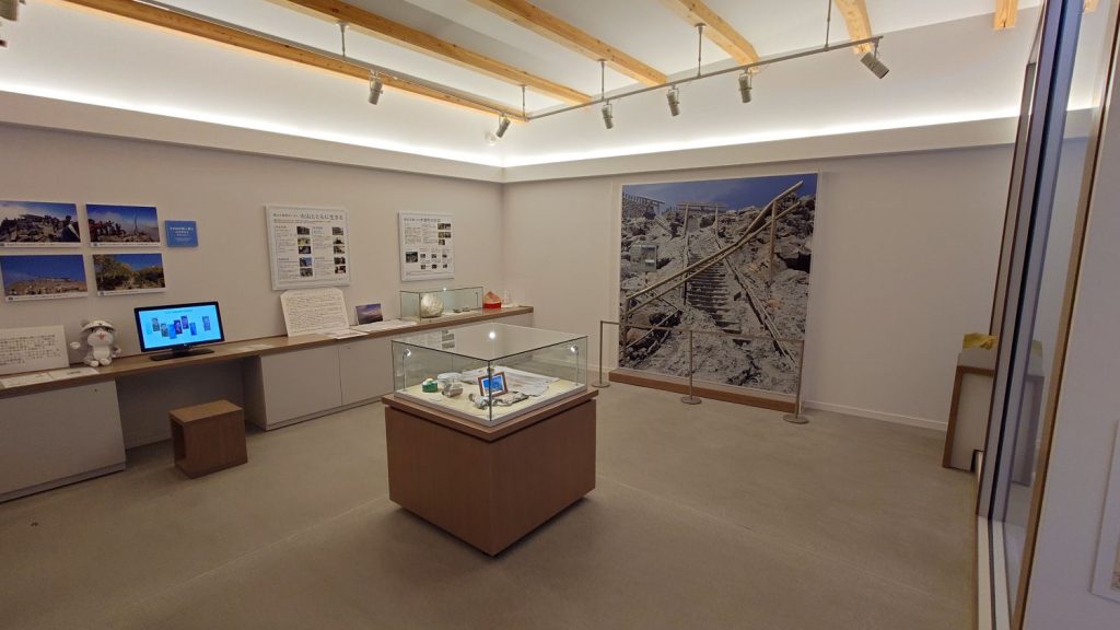 施設の奥へ進むと、地元の歴史や御嶽山登山の案内、そして約10年前に起きた噴火の記録など、さまざまな情報が紹介されています。