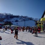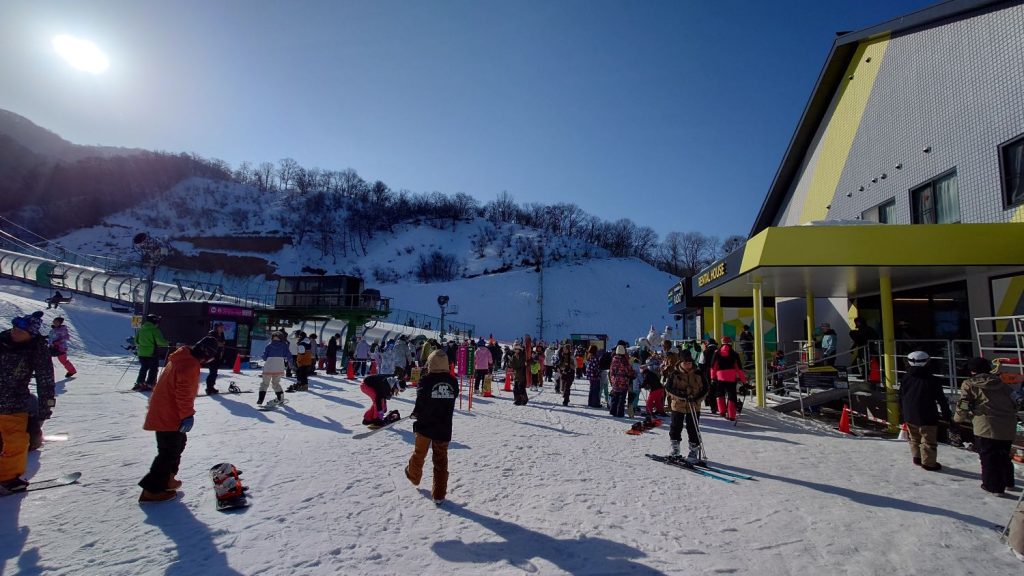朝8時からさっそく滑り始めましたが、今年は雪が少なく、ところどころ山肌が見えていて少し滑りにくいコンディションでした。雪質も氷のようにカチカチで、転ぶとかなり痛い状態です( ノД`)。昨年は雪も豊富でとても滑りやすかっただけに、少し残念に感じました。