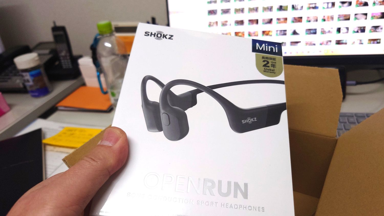 最近、仕事中の業者さんやバイクに乗る方たちが頭につけているこの「Shokz」の骨伝導イヤフォンをよく見かけるようになりました。