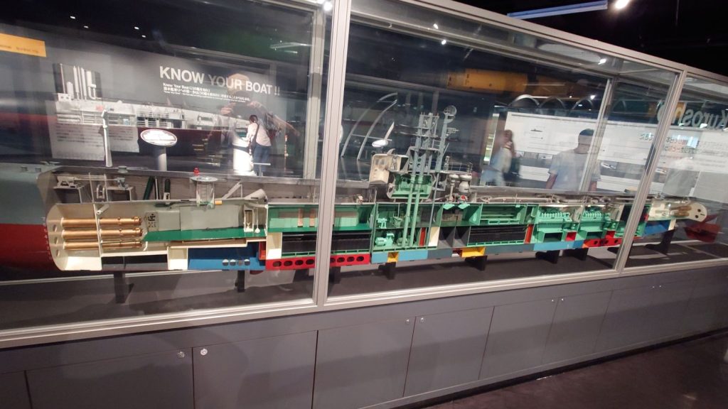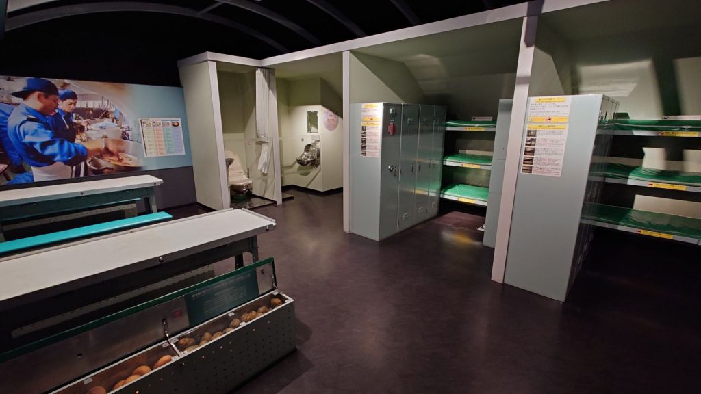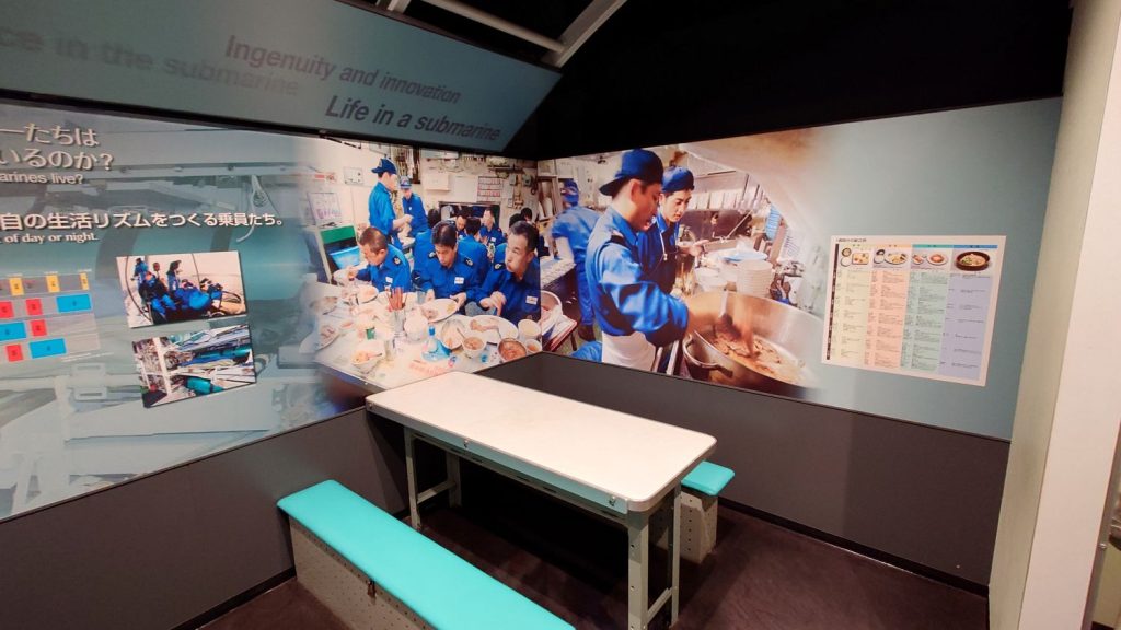 まず紹介したいのは、やはり潜水艦の内部を再現した展示ブース。実際の艦内は撮影禁止でしたが、この資料館では船員の生活や潜水艦の仕組みを、内部模型やパネルで紹介していました。