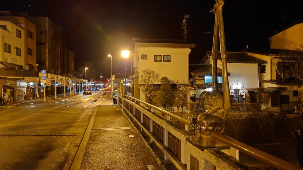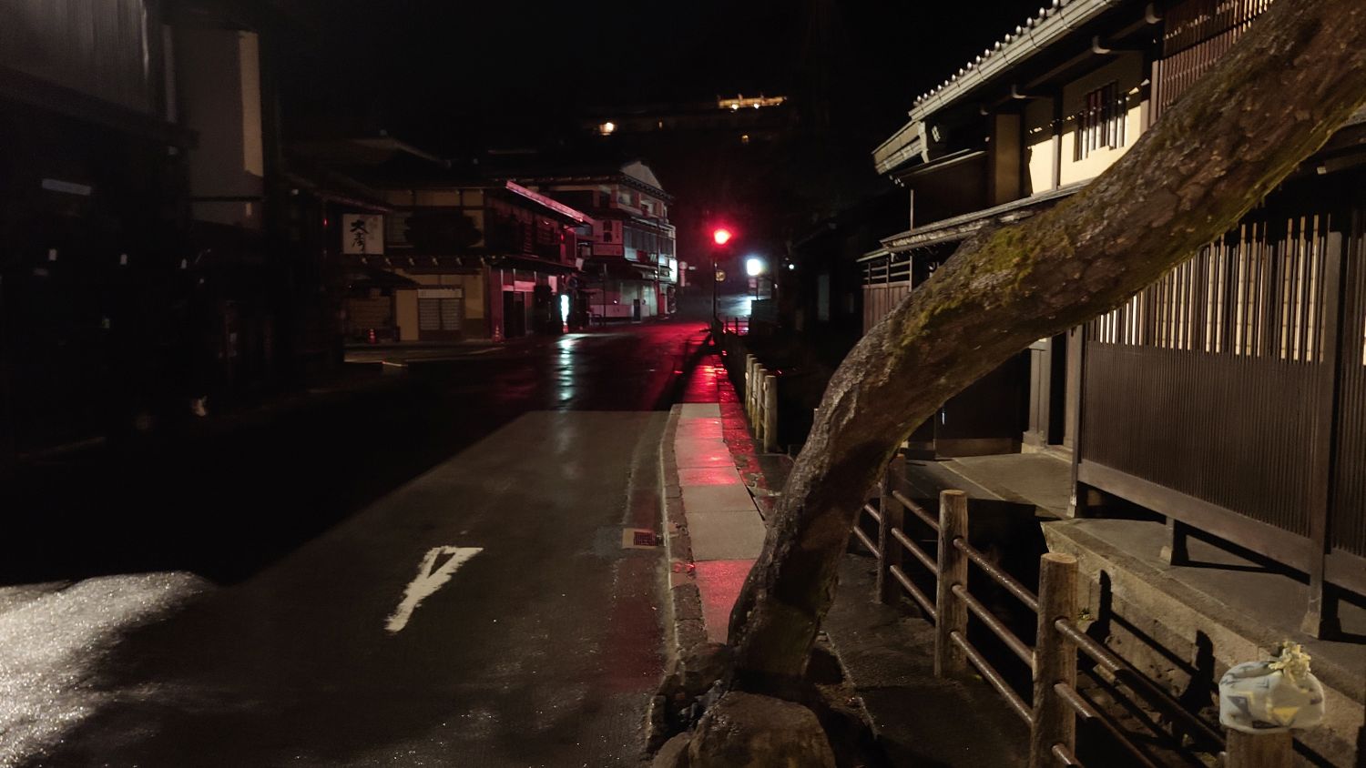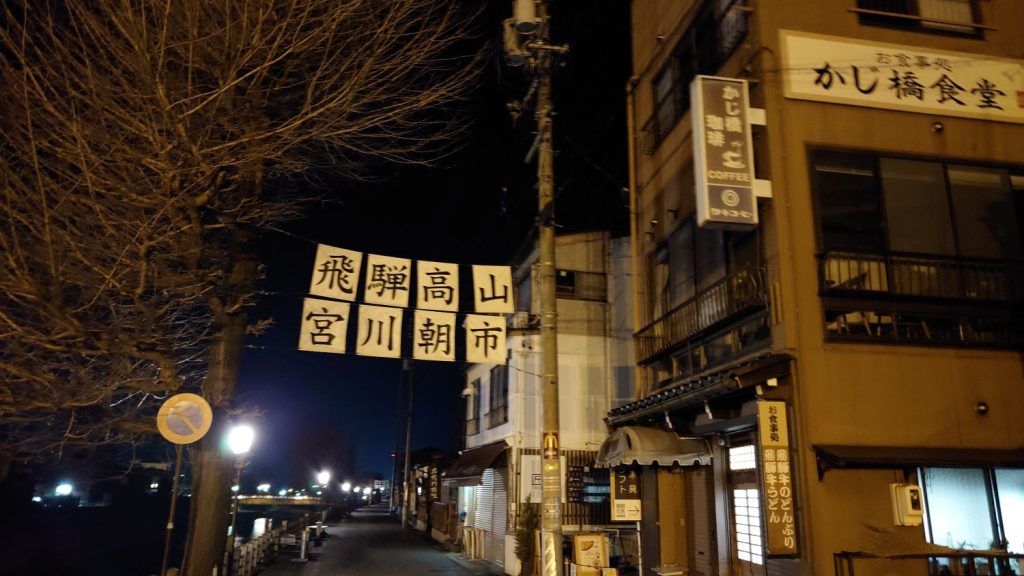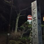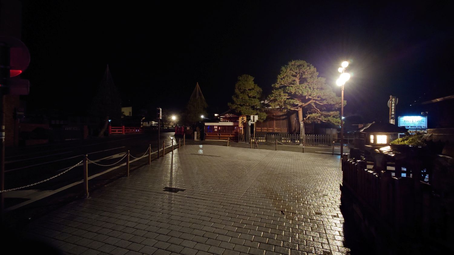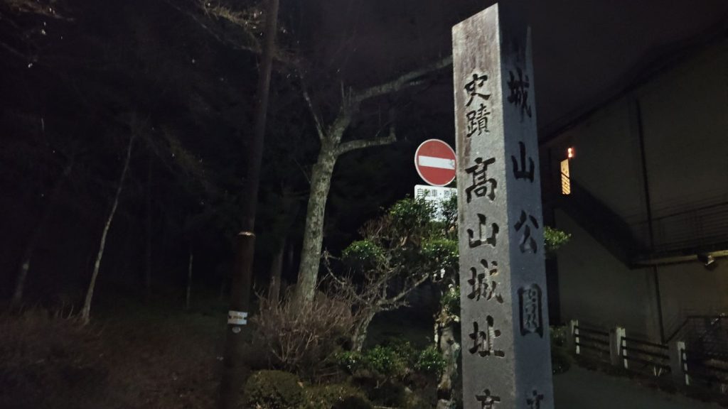 もう一つ感じたのは、とにかく暗すぎること。足元がほとんど見えません。写真は街灯のある場所なのでまだ撮影できましたが、高山城跡へ登ったときは、周囲が全く見えず、かなり苦労しました。
